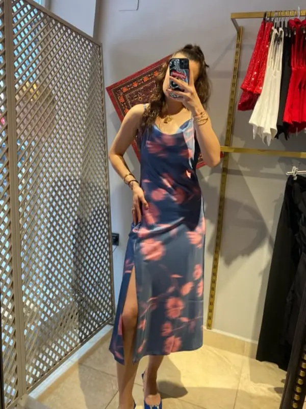 DESENLİ SATEN ELBİSE