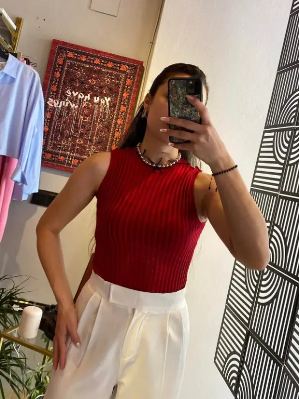KIRMIZI TRANSPARAN BLUZ