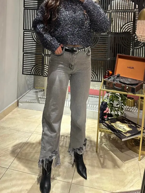 PAÇA DETAYLI LİKRASIZ JEAN